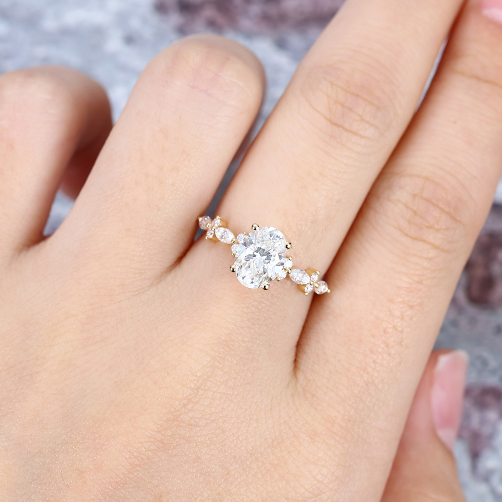 Oval Cut Lab Diamond Engagement Ring Cluster Promise Ring